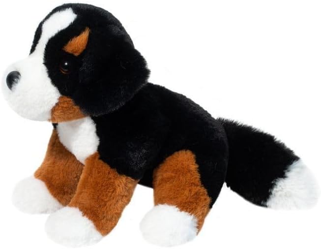 Ready for an afternoon of rowdy romping, Bowie the Soft Bernese Mountain Dog stuffed animal is an engaging companion! We’ve depicted the attractive tricolored coat of the breed in indulgently soft materials that beg to be cuddled. A floppy design adds to Bowie’s play value. Stuffed with silky polyester fill and weighted with beans, our posable pup will sit up or lie down for you but would rather be at your side in search of new adventures. His amber colored eyes catch the light in a lifelike way and lend to his lively personality. Equal parts handsome and huggable, Bowie will put a smile on the face of Berner fans of all ages!