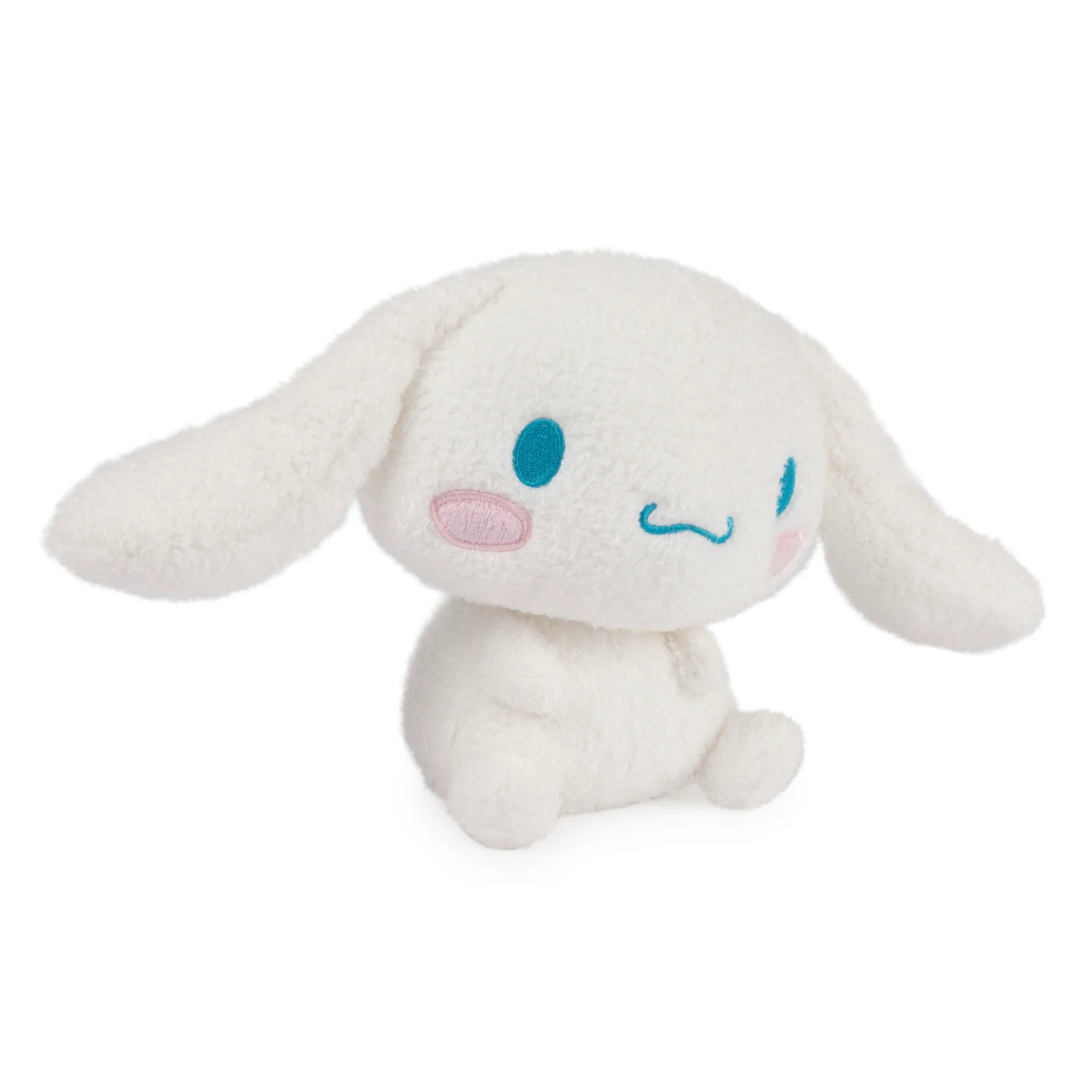 Cinnamoroll®, Café Cinnamon’s chubby, rosy-cheeked mascot, is here as a super-soft plush! This 6-inch stuffed puppy is the latest addition to the GUND® Sanrio® collection, featuring premium textured white plush, pastel rosy-pink cheeks, and bright blue embroidered facial details. Cinnamoroll is featured here in a classic upright sitting pose, ears extended and ready to be cuddled or displayed in any kawaii plush collection!