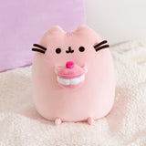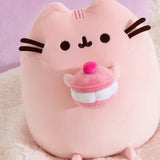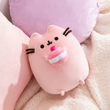 Join Pusheen for a sophisticated snack! This adorable, super-squishy plush features Pusheen holding a pink-and-white cherry macaron. Her pastel pink plush is accented by deep brown whiskers, matching facial embroidery, and pink stripes on her back and tail. Squisheens are super-soft, squishy, and surface washable for easy cleaning.