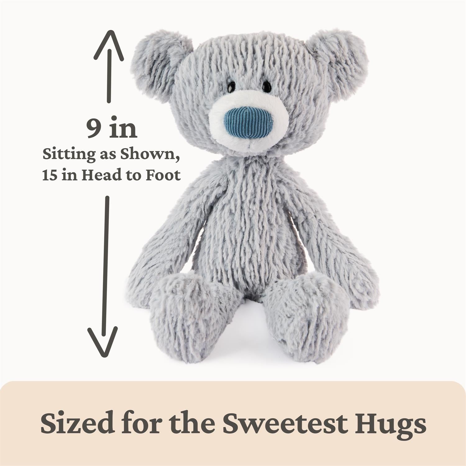 • WAVY GRAY TOOTHPICK BEAR: Inspired by our Toothpick teddy bear, Wavy is a 15` blue-gray bear with a slender frame, floppy posable limbs, a soft plush muzzle, and a steel-blue corduroy nose. It also boasts soft textured plush in a unique wavy pattern.